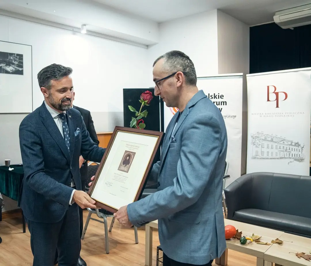 zdjęcie GRZEGORZ SZUPILUK za zaangażowanie i całokształt niezwykłej twórczości literackiej oraz znaczący wkład w rozwój kultury i życia społecznego Białej Podlaskiej, a także za inspirację oraz wzbogacanie literackiego dziedzictwa miasta.