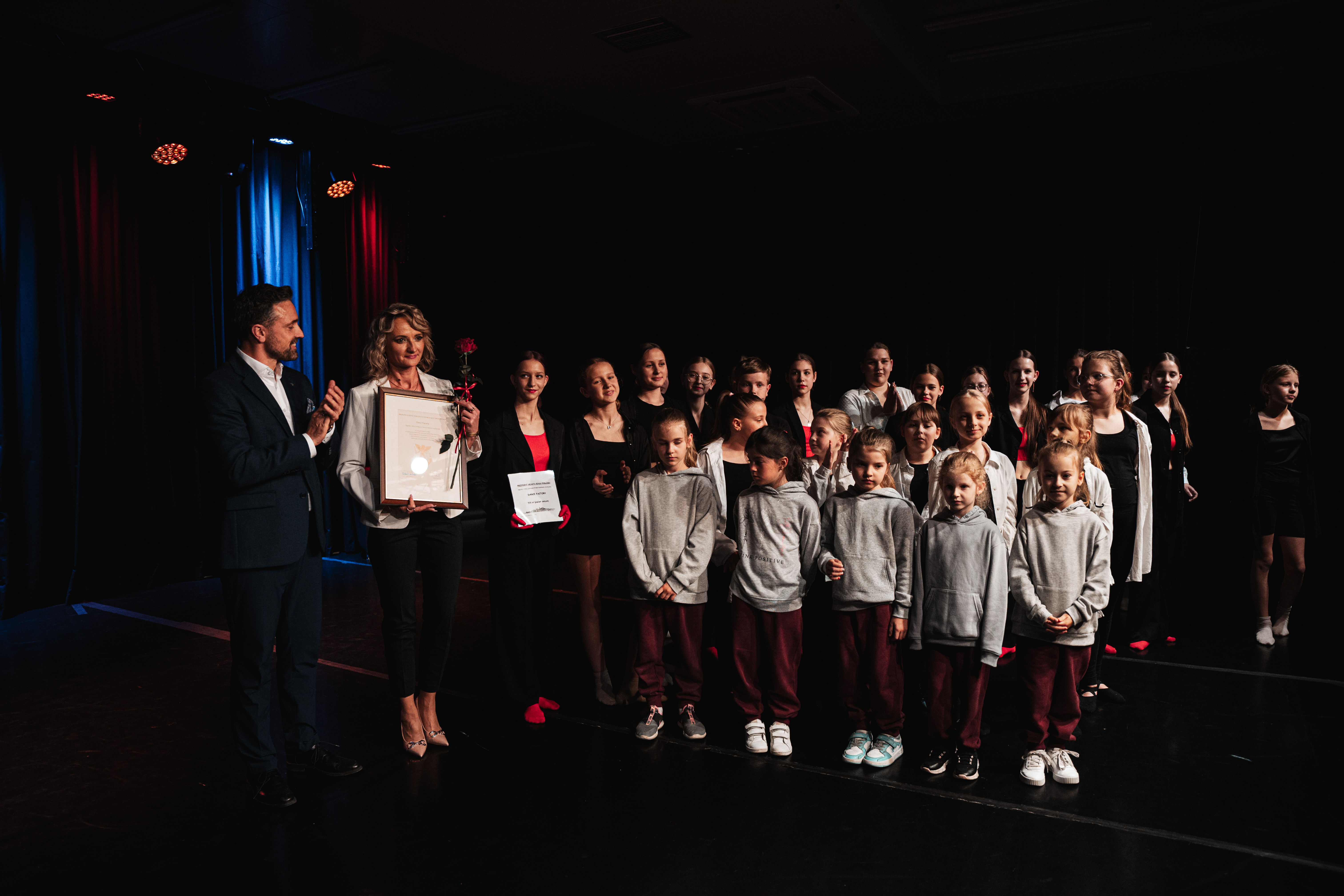 zdjęcie DANCE FACTORY nagroda z okazji jubileuszu 5-lecia działalności artystycznej za zaangażowanie i wkład w kreowanie artystycznej tożsamości miasta Biała Podlaska, liczne osiągnięcia w dziedzinie sztuki tanecznej oraz nieustanne inspirowanie i rozwijanie twórczego potencjału dzieci i młodzieży.